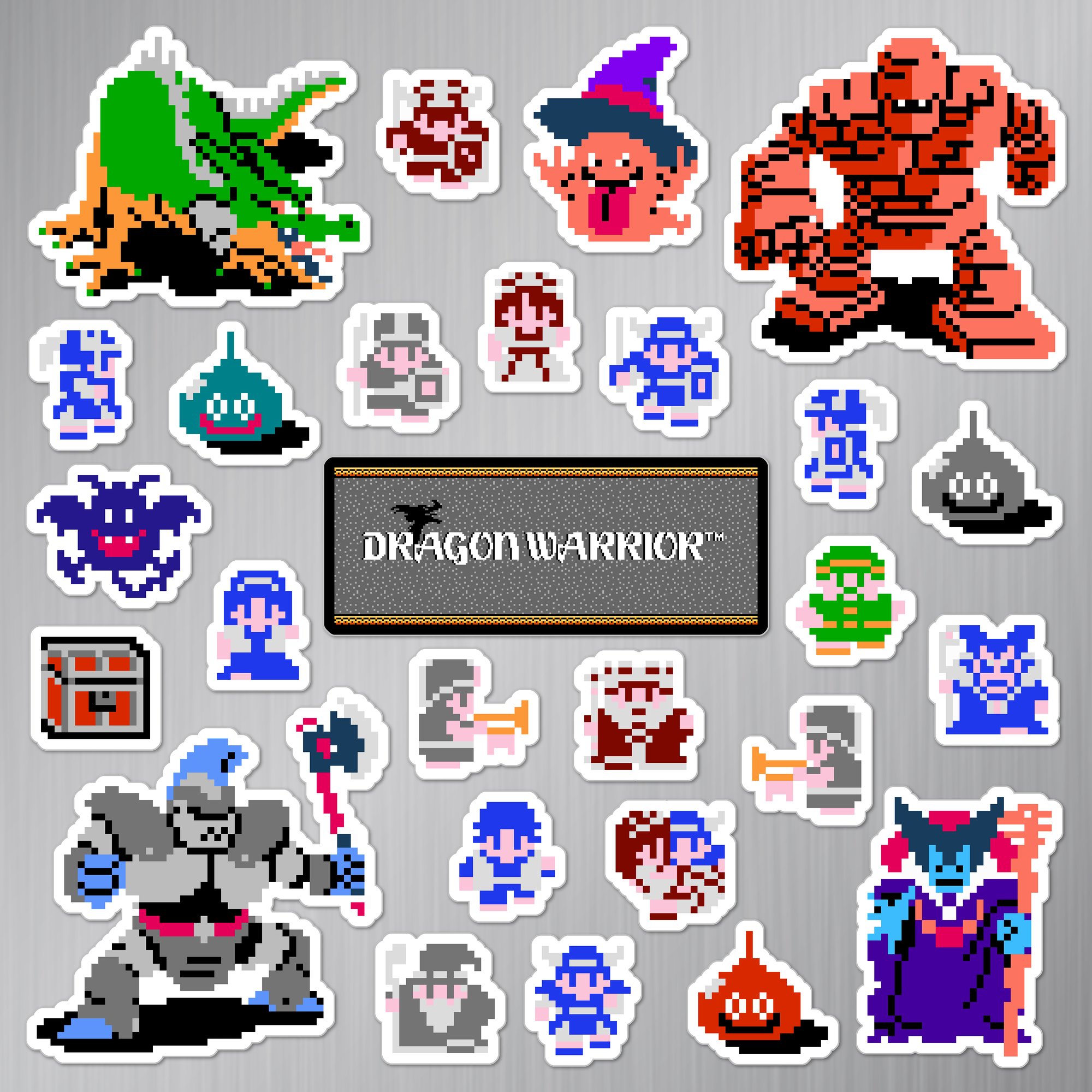 Made to order 27-piece Dragon Warrior set features characters and items from the 1986 Nintendo NES game.
