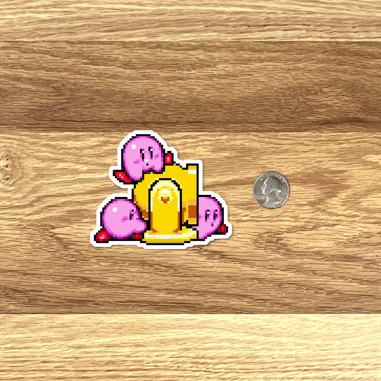 Made to order 23-piece Kirby Super Star vinyl sticker set features characters and items from the Dyna Blade mini-game in the 1996 Super Nintendo SNES game.