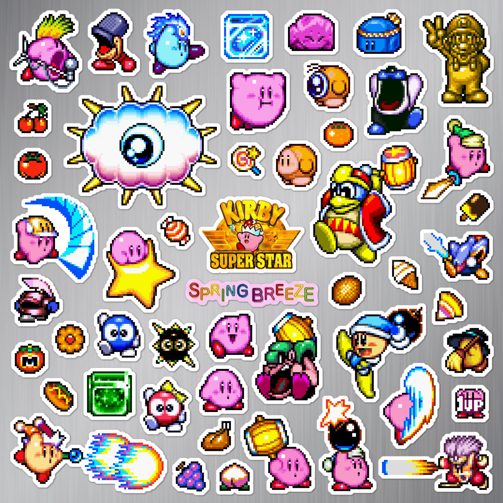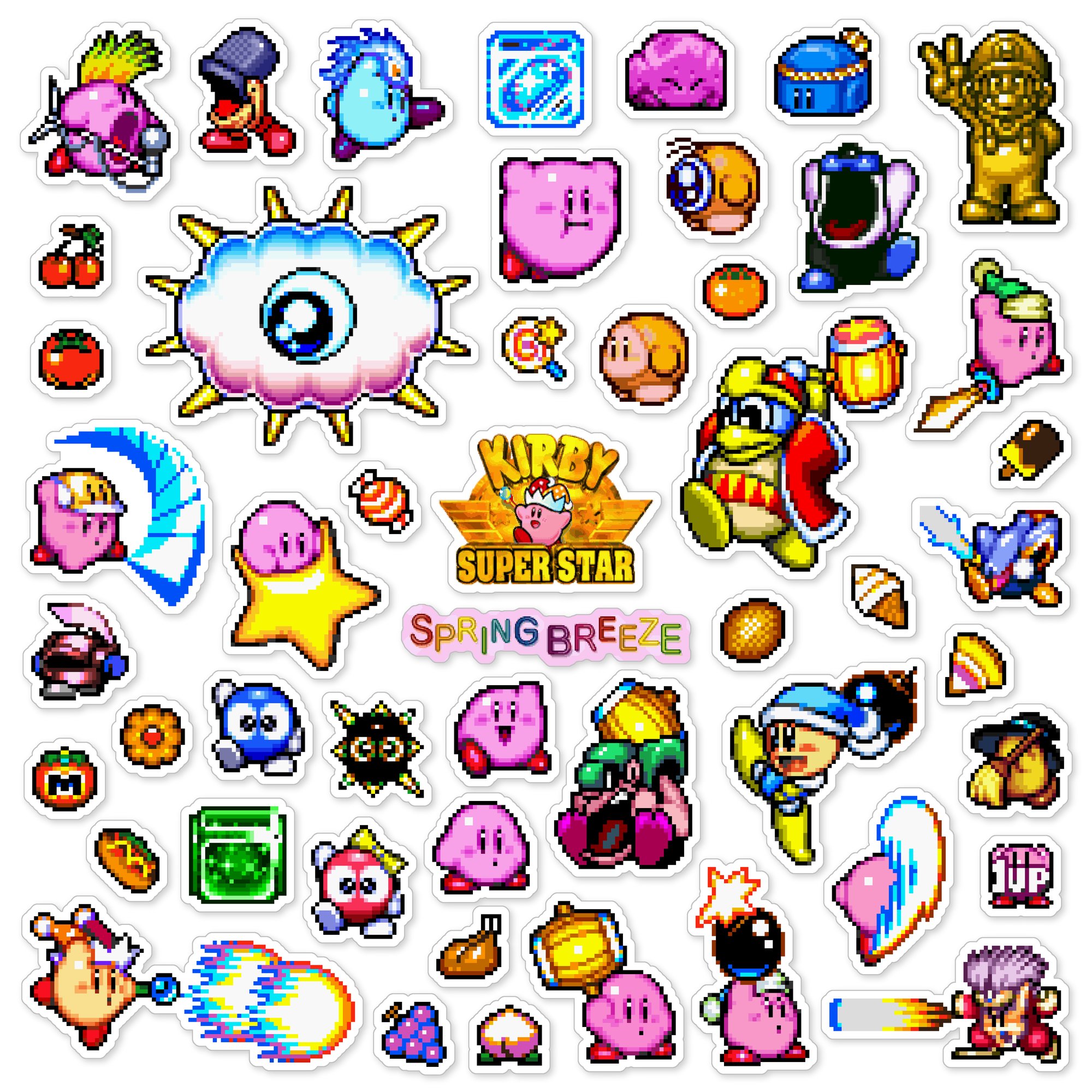 Made to order 50-piece Kirby Super Star set features characters and items from the Spring Breeze mini-game in the 1996 Super Nintendo SNES game.