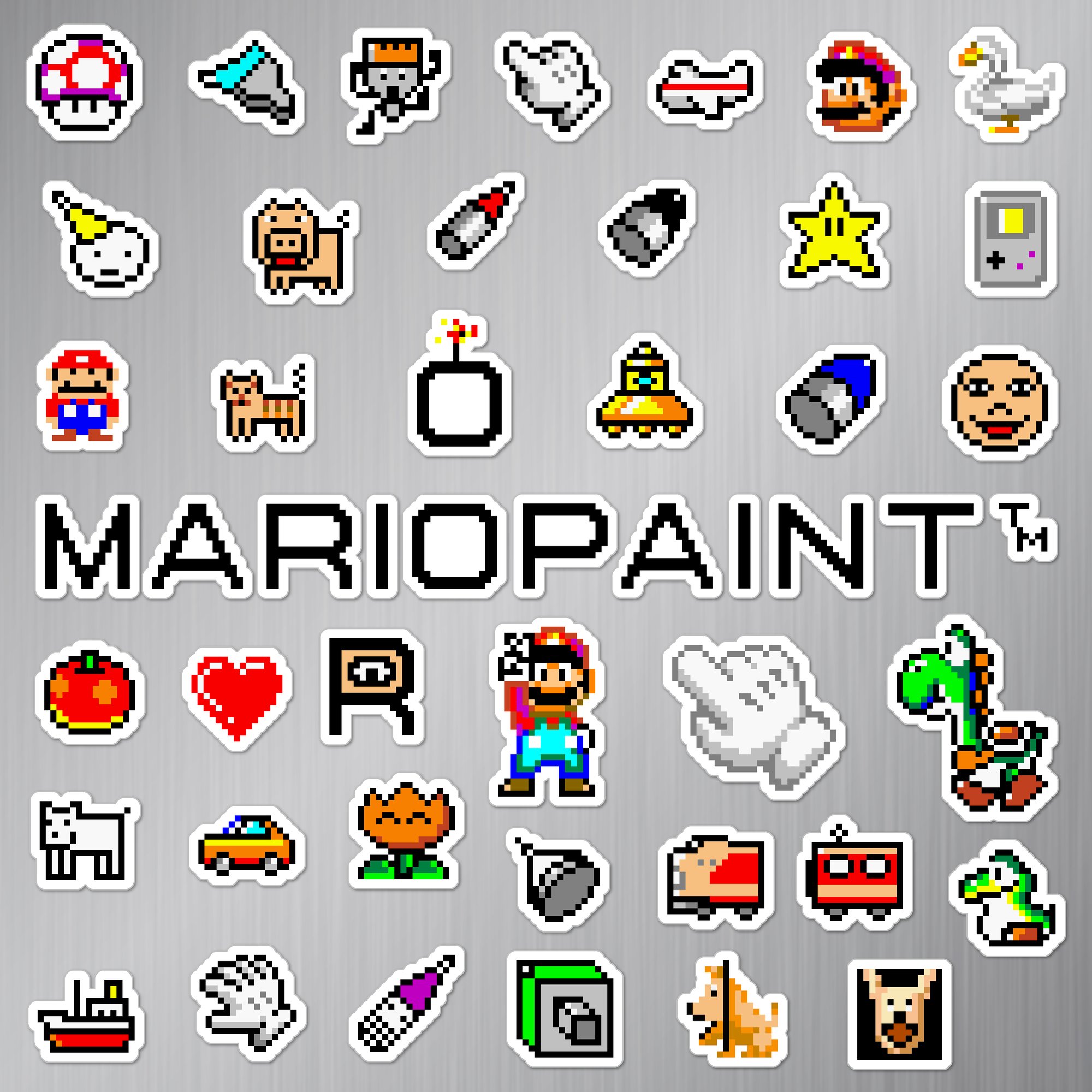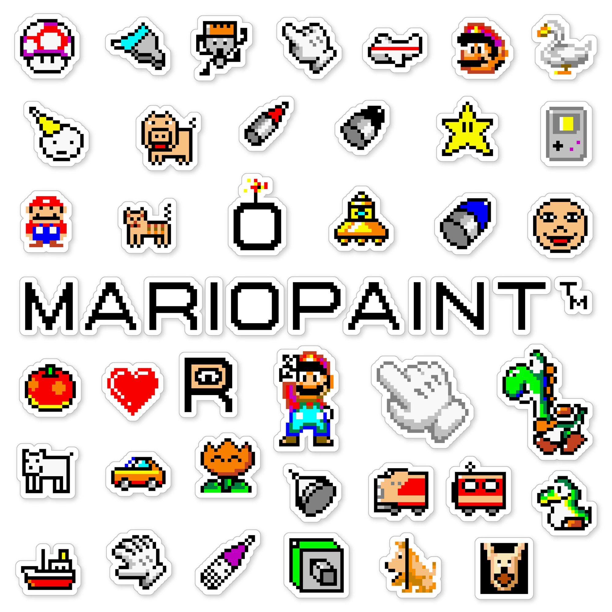 Made to order 49-piece Mario Paint set features characters and items from the 1992 Super Nintendo SNES game.