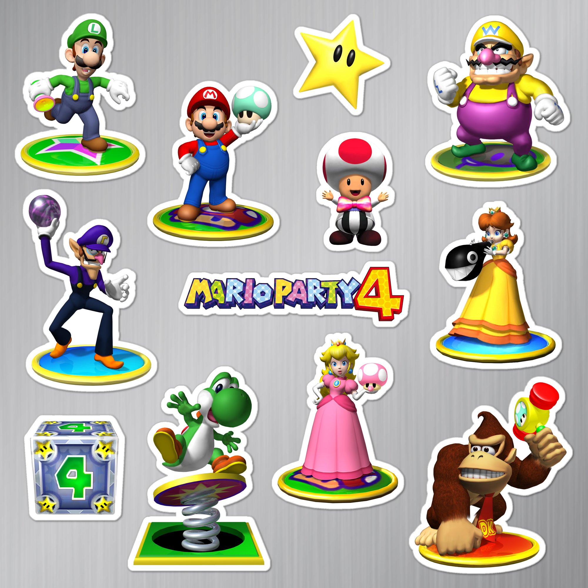 Made to order 12-piece Mario Party 4 set features characters and items from the 2002 Nintendo GameCube game.