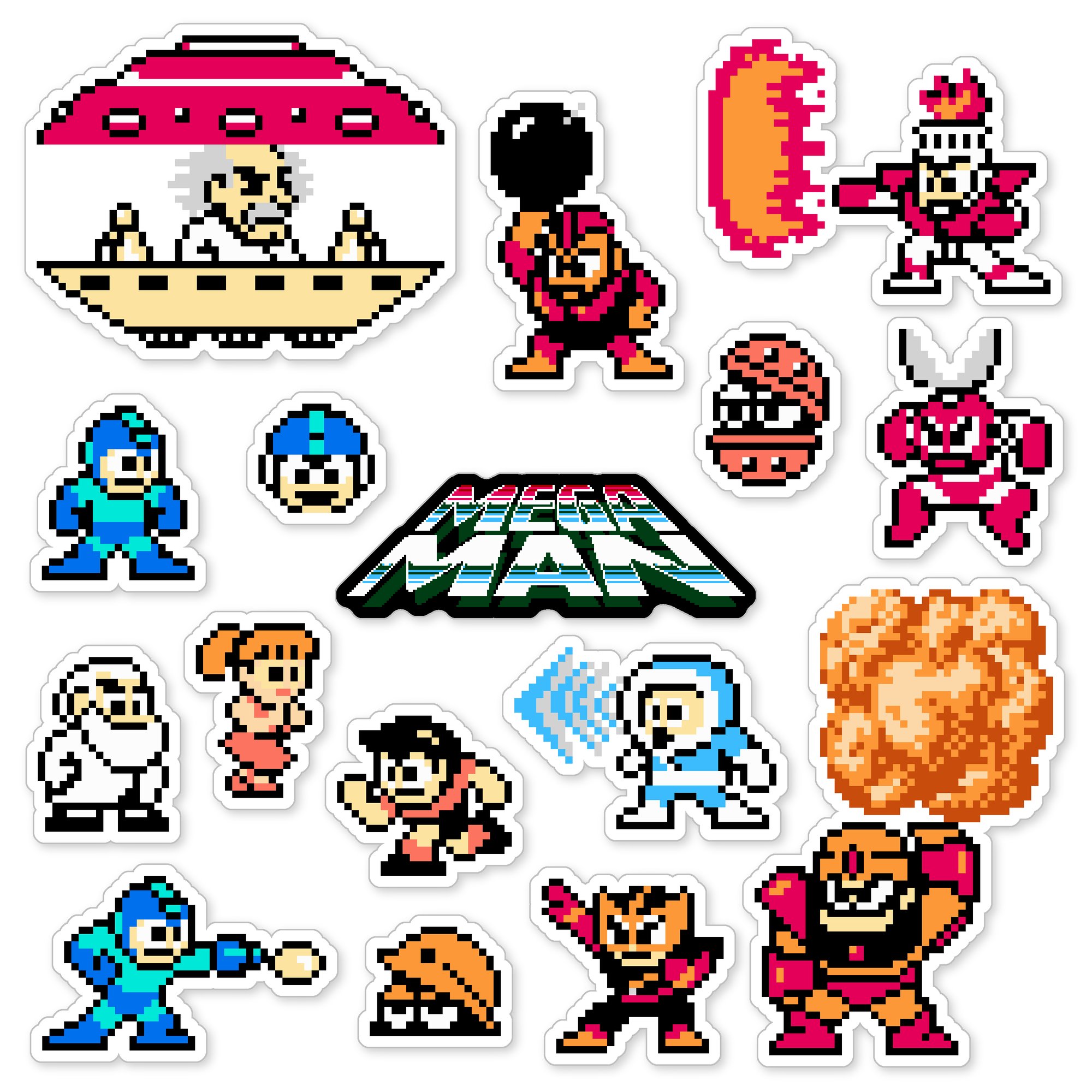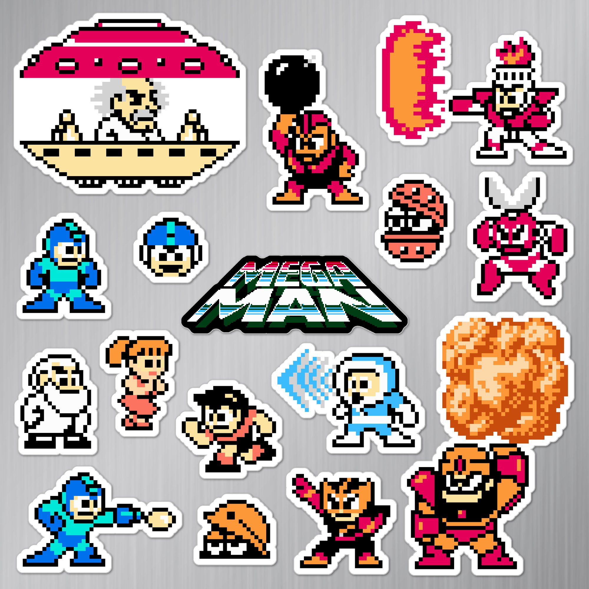 Made to order 16-piece Mega Man set features characters and items from the 1987 Nintendo NES game.