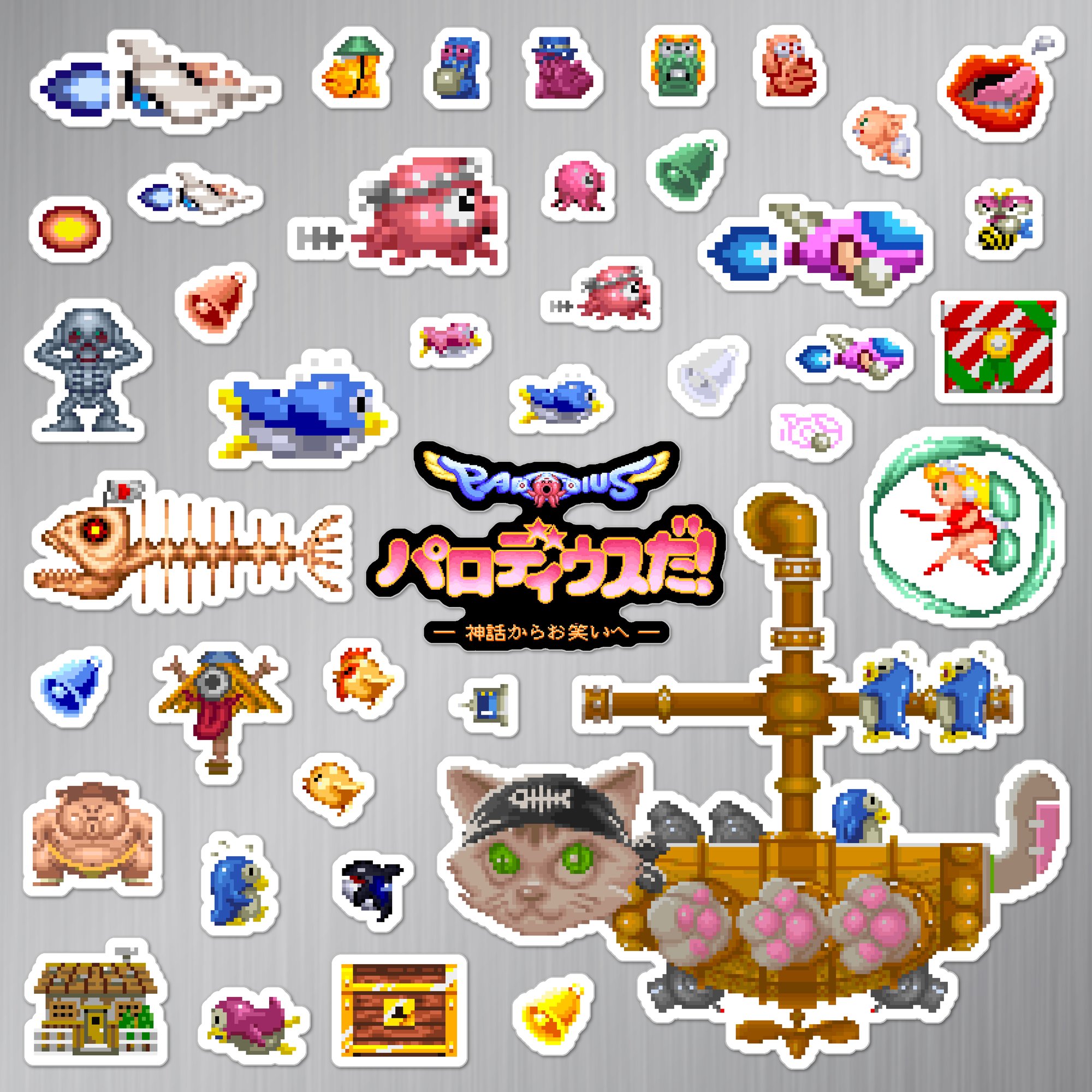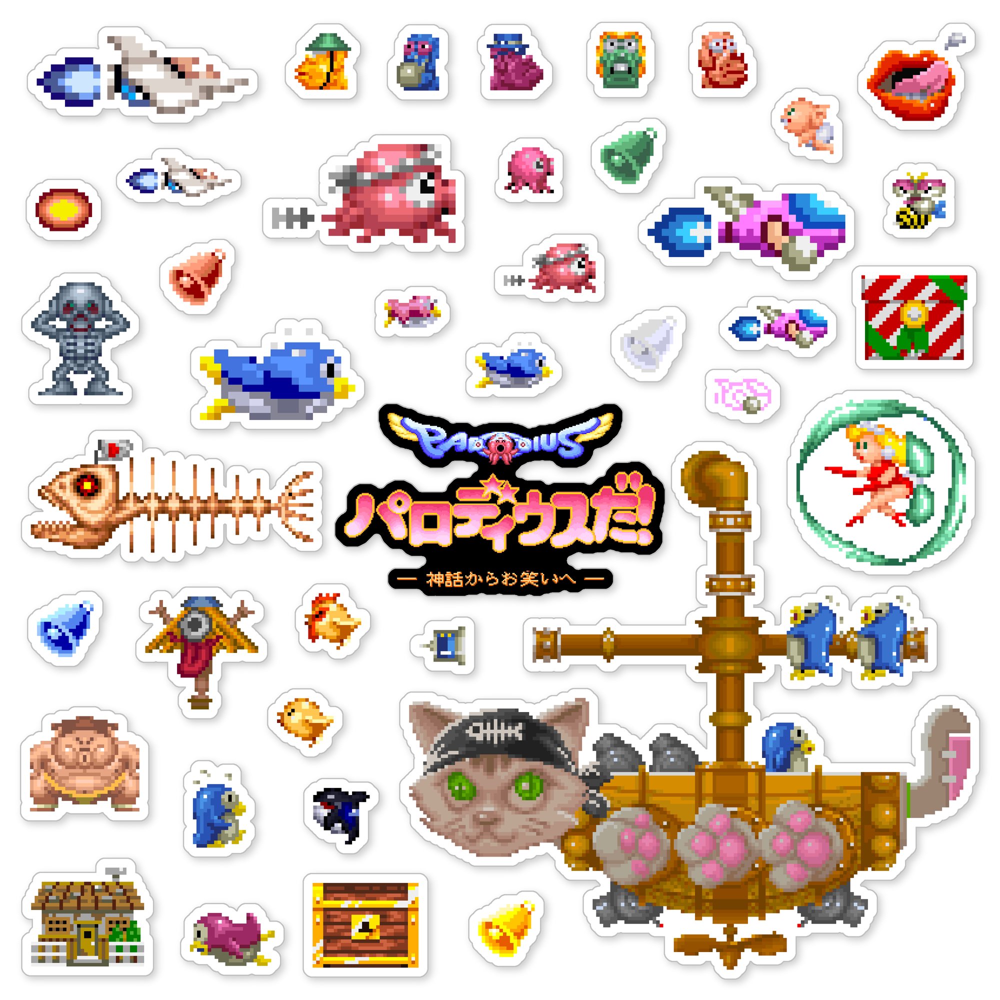Made to order 41-piece Parodius Da! Shinwa kara Owarai e set features characters and items from the 1990 arcade game.