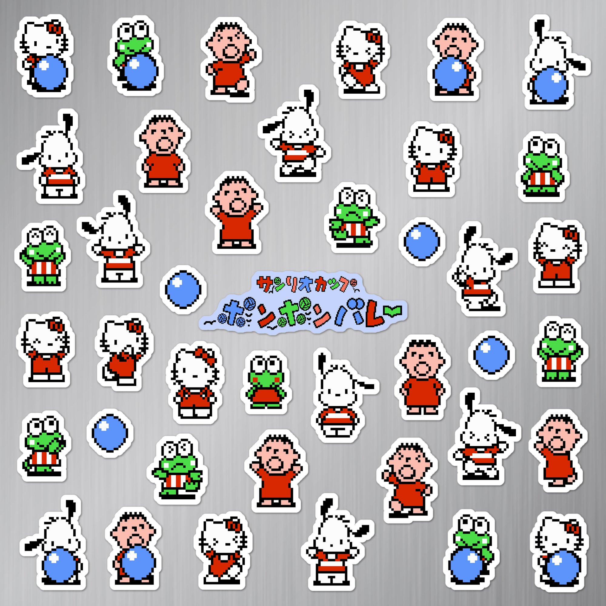 Made to order 41-piece Sanrio Cup: Pon Pon Volley set features characters and items from the 1992 Famicom game.