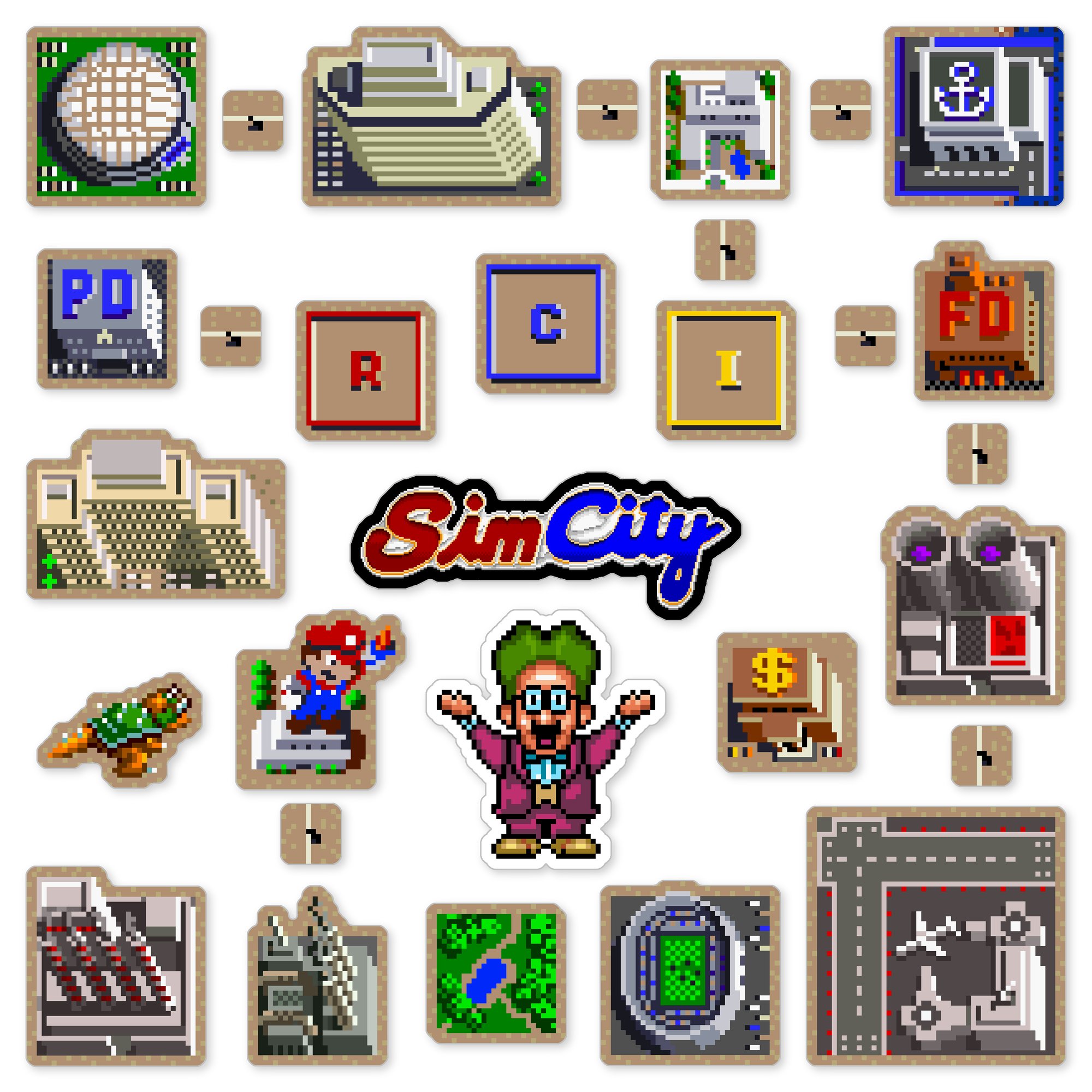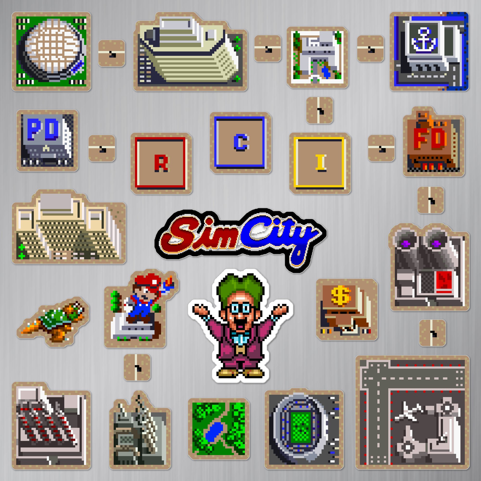 Made to order 30-piece SimCity set features buildings and characters from the 1991 Super Nintendo SNES game.