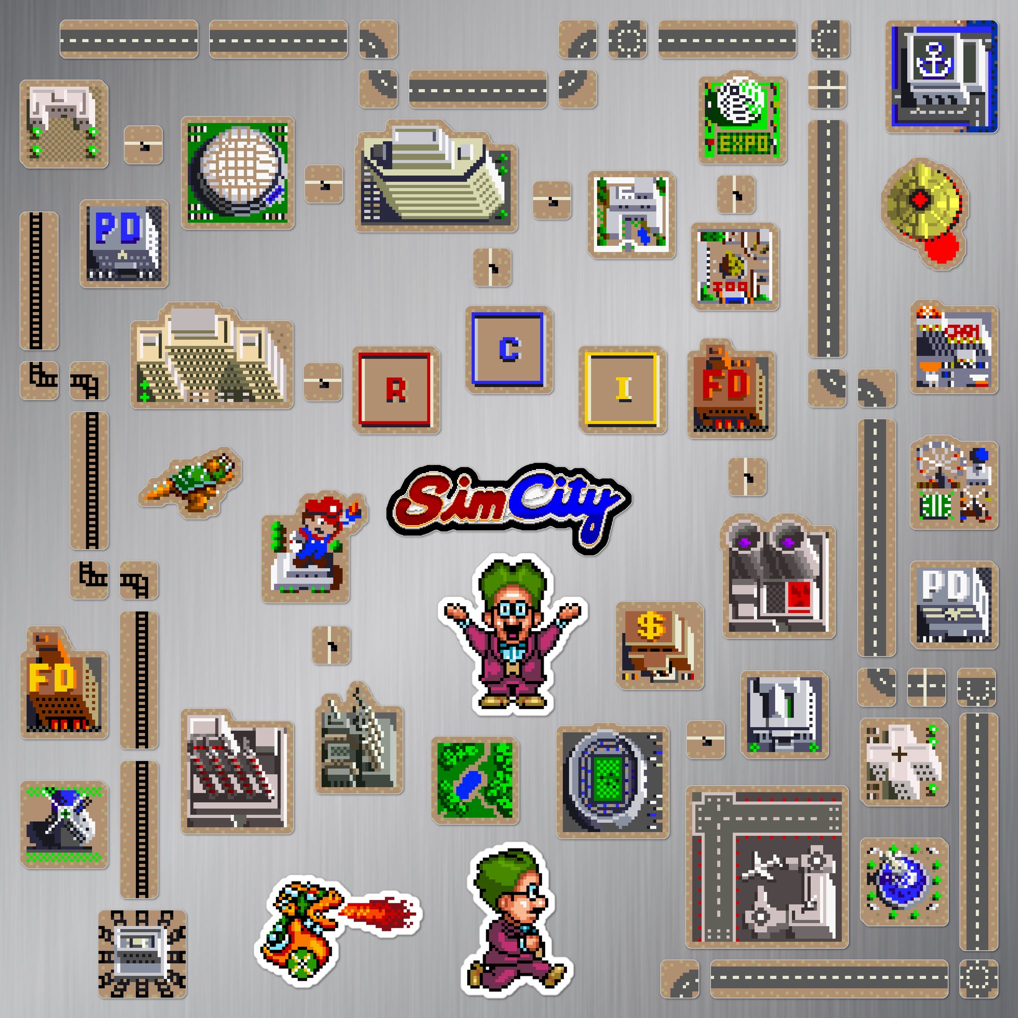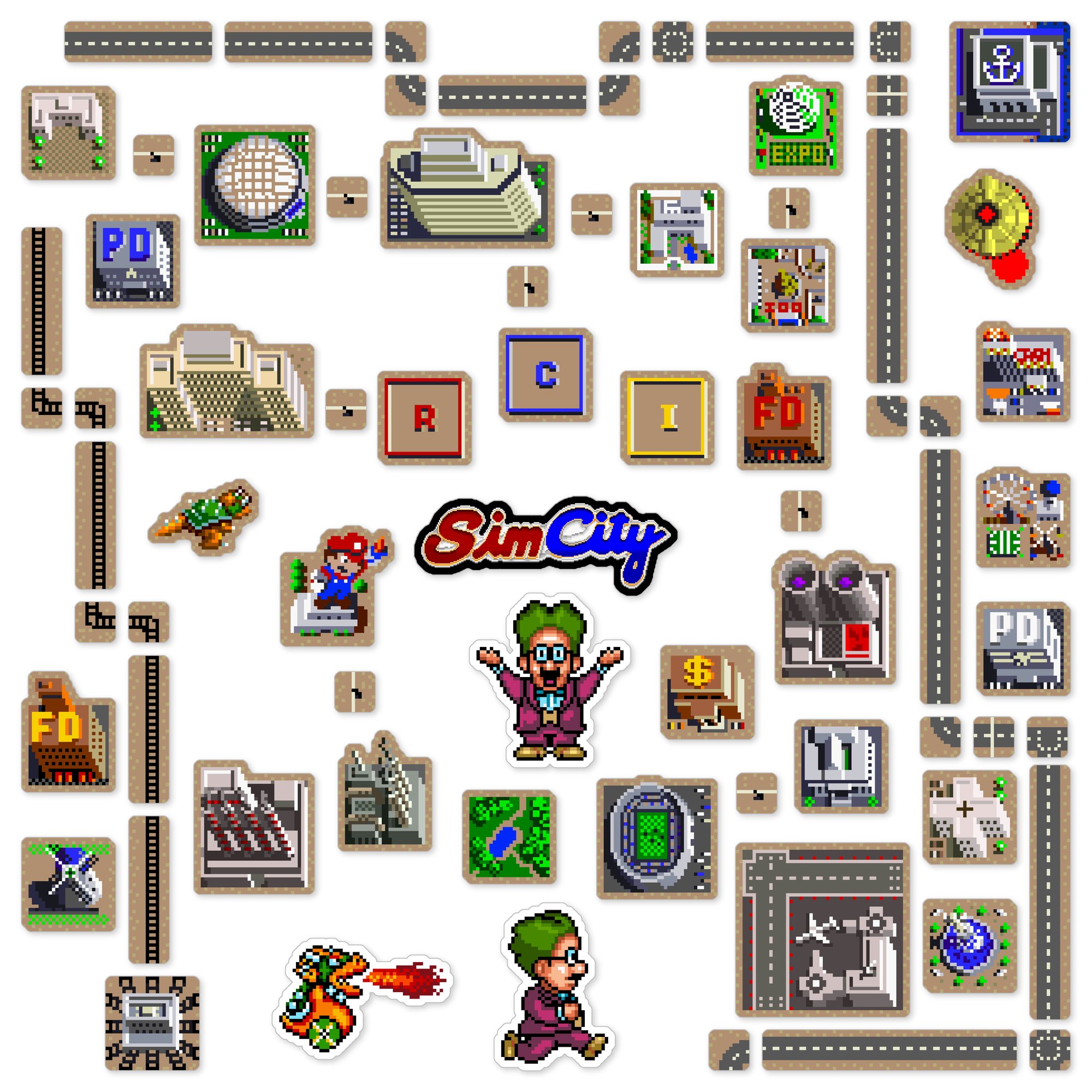 Made to order 75-piece SimCity set features buildings and characters from the 1991 Super Nintendo SNES game.