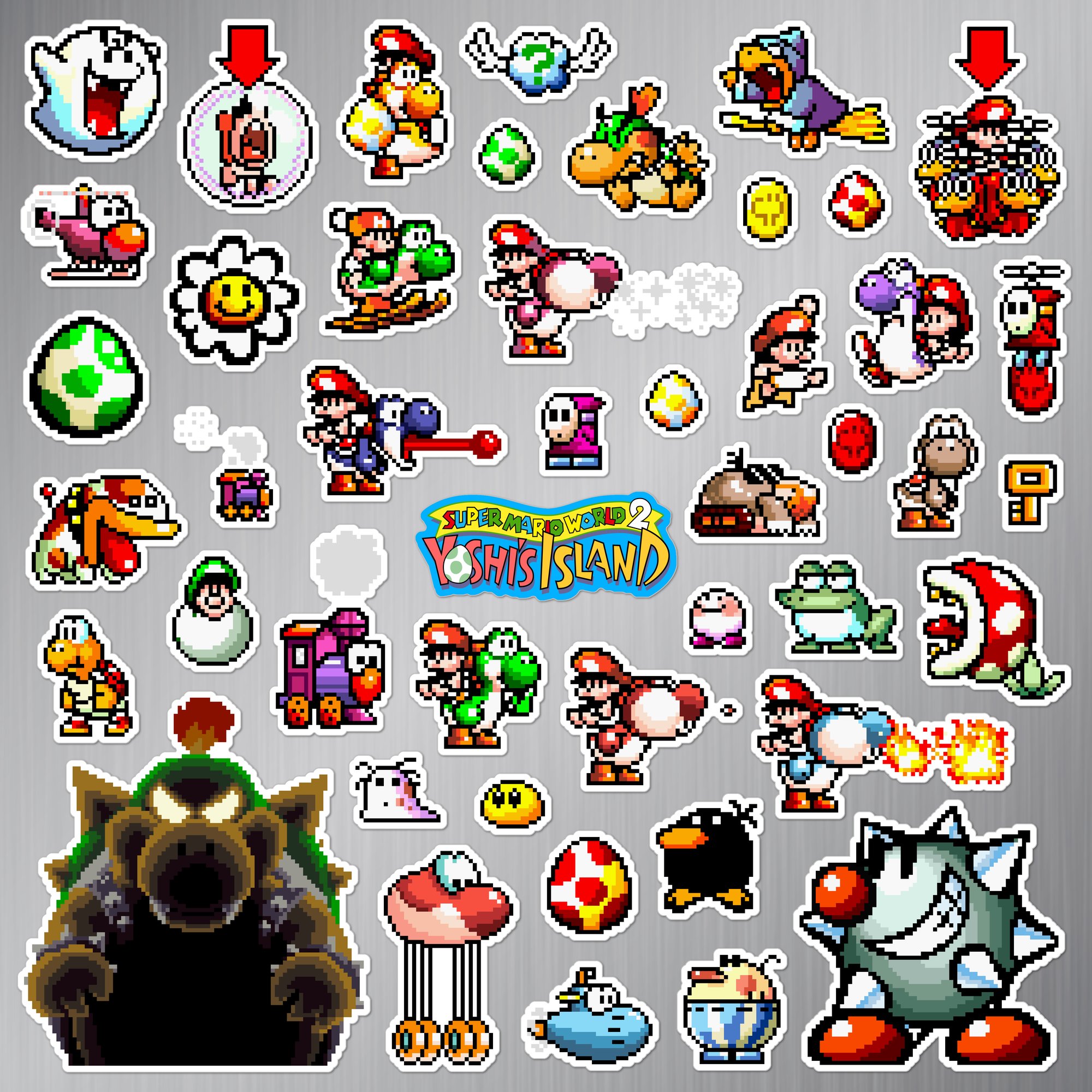Made to order 46-piece Super Mario World 2: Yoshi's Island set features characters and items from the 1995 Super Nintendo SNES game.