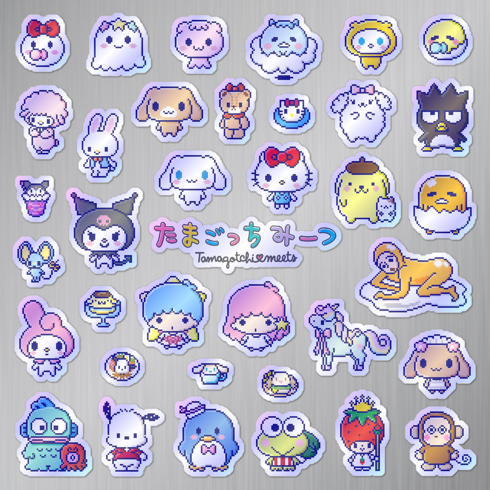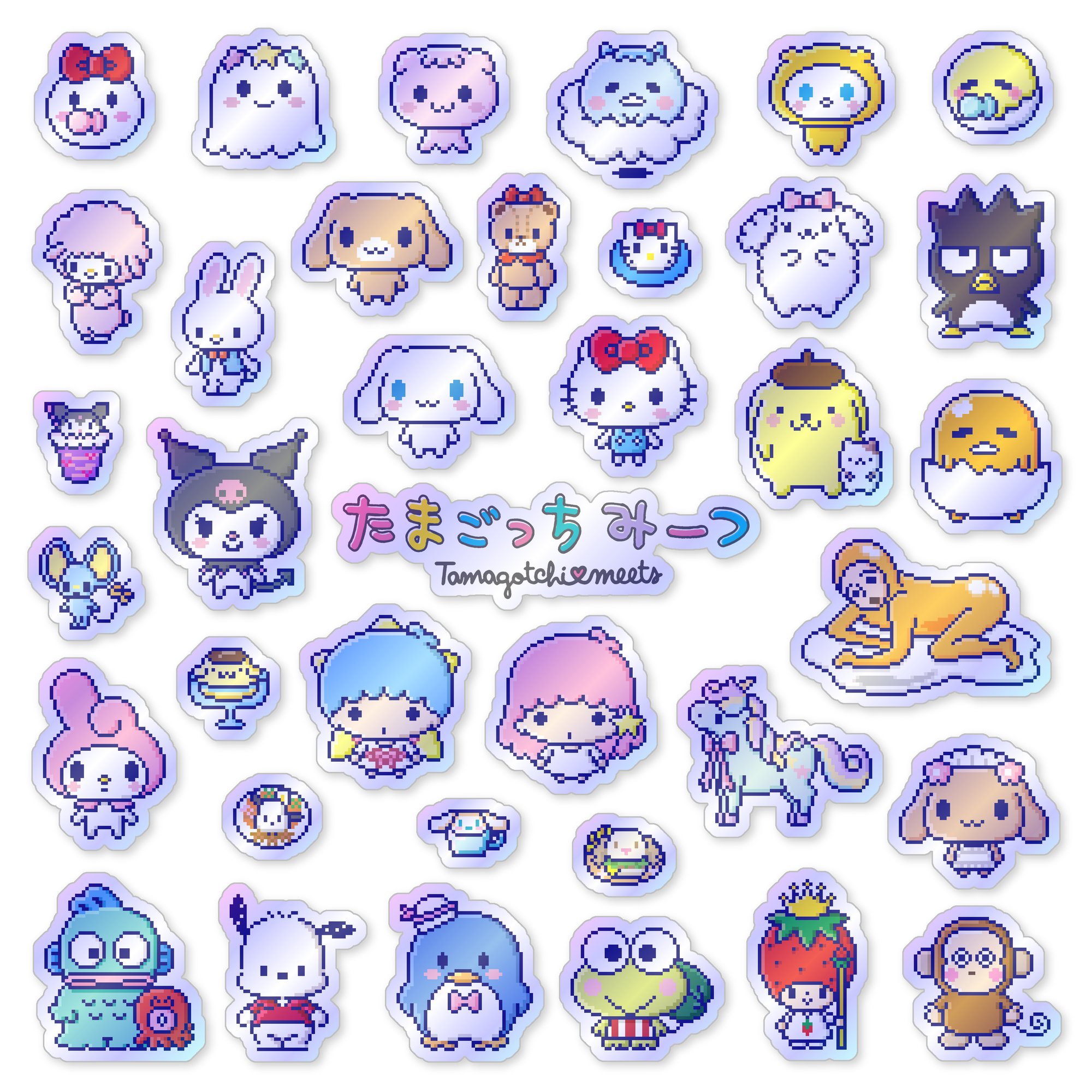 Made to order 37-piece Tamagotchi Meets Sanrio Characters set features characters and items from the 2019 virtual pet simulation game.