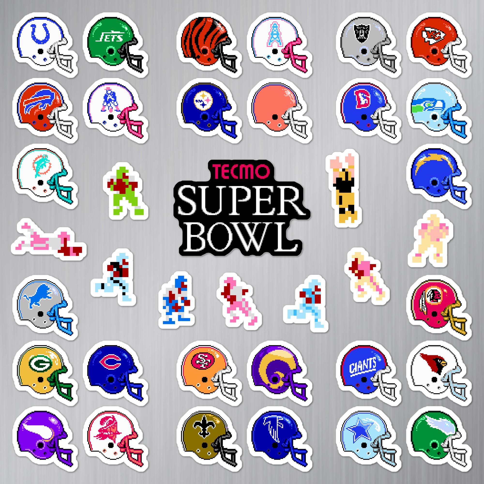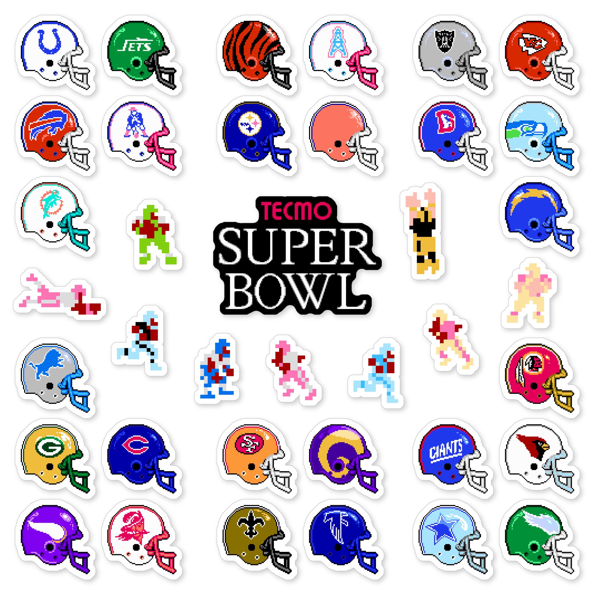 Made to order 38-piece Tecmo Super Bowl set features NFL helmets and players from the 1991 Nintendo NES game.