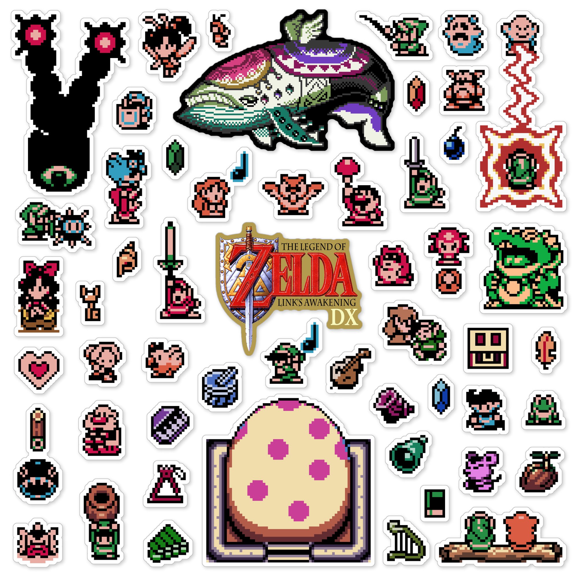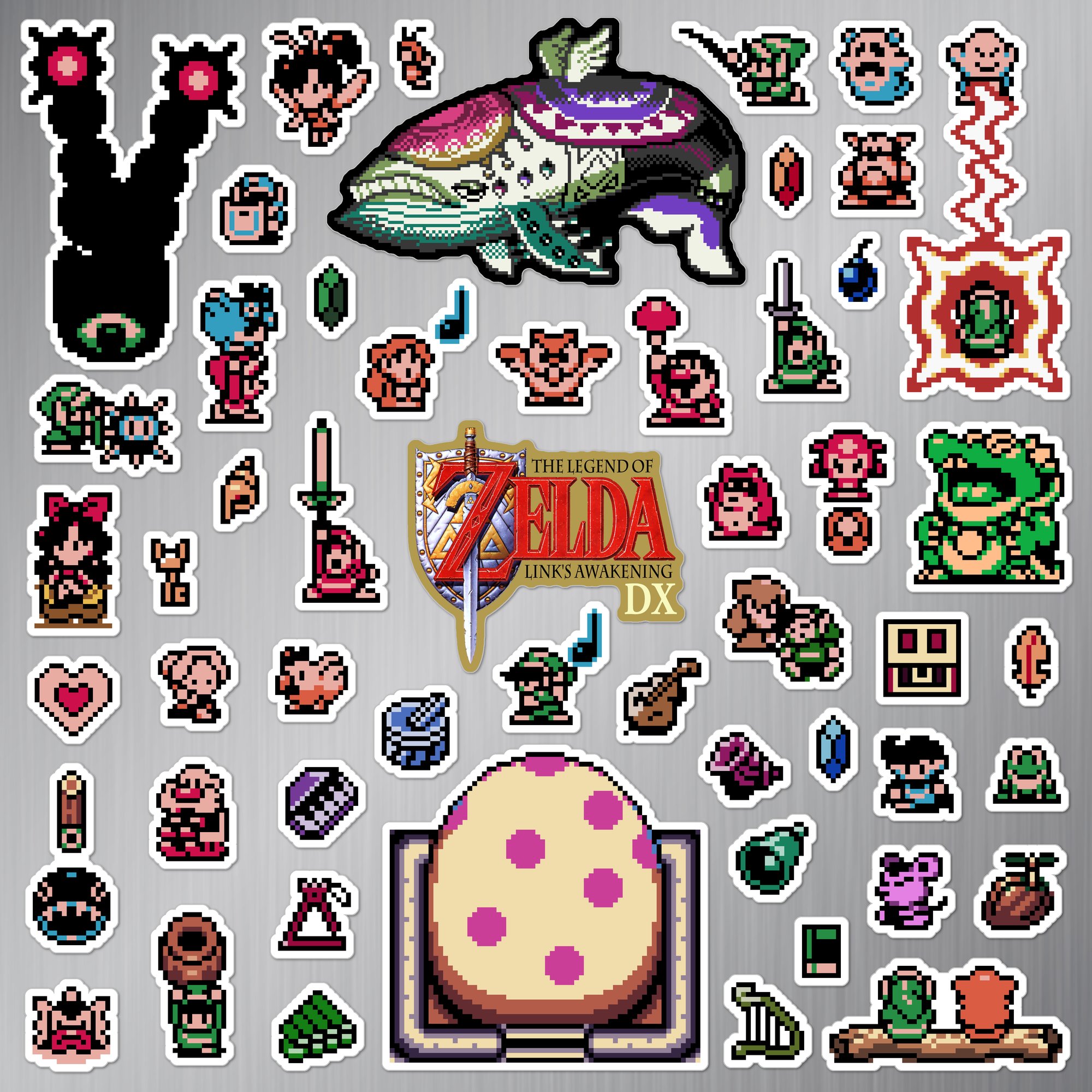 Made to order 53-piece The Legend of Zelda: Link's Awakening DX set features characters and items from the 1998 Nintendo Game Boy Color GBC game.