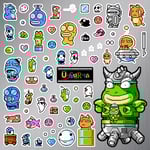 This complete set is cut from two 8.5" x 11" sheets of white glossy or holographic vinyl sticker paper or magnet.